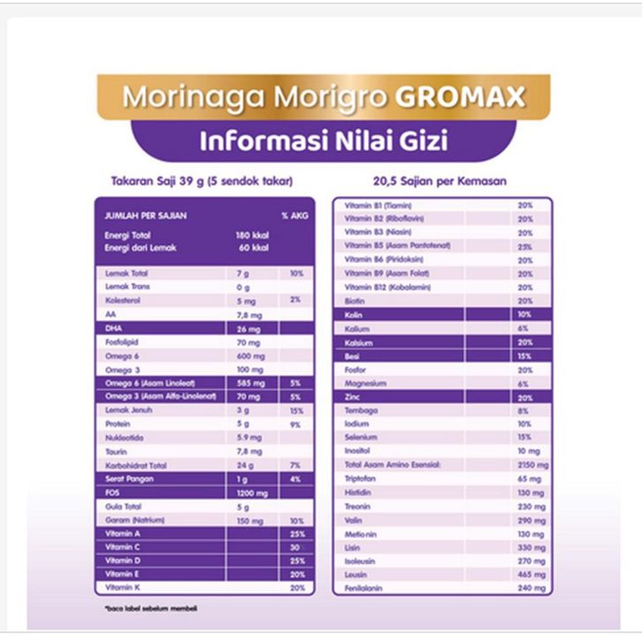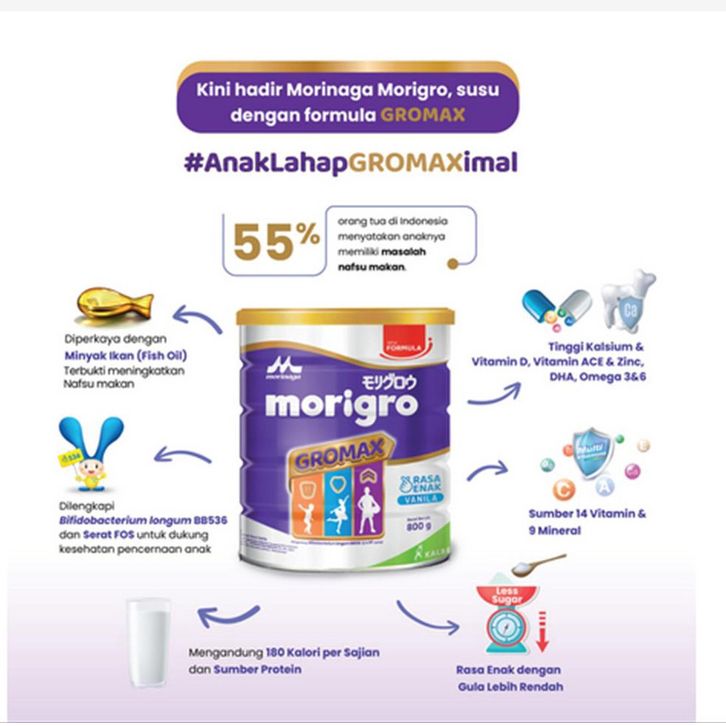 MORIGRO GROWMAX VANILA KALENG MADU KOTAK 800GR MORINAGA MORIGRO SUSU 800GR SSKL TINGGI KALORI