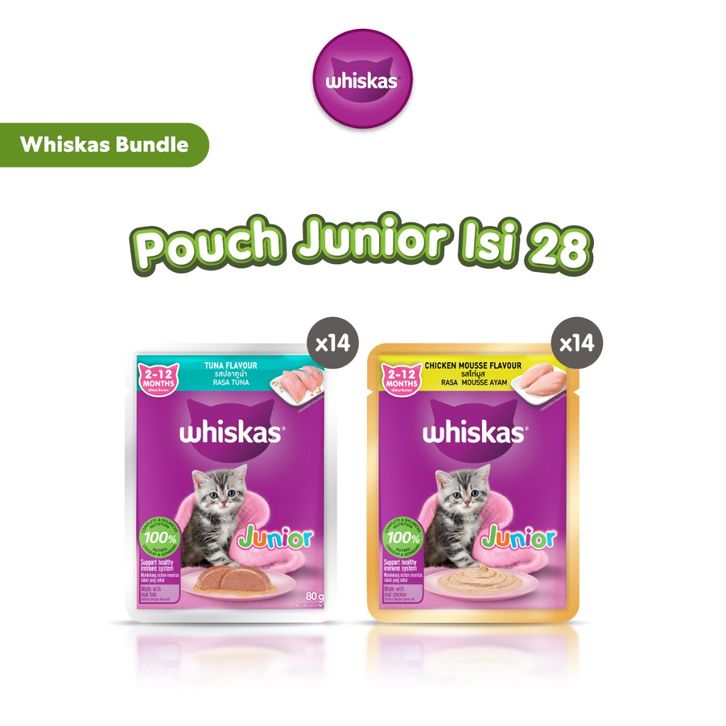 Whiskas Makanan Kucing Basah Pouch Junior Rasa Tuna & Chicken Mousse 809r - Isi 28