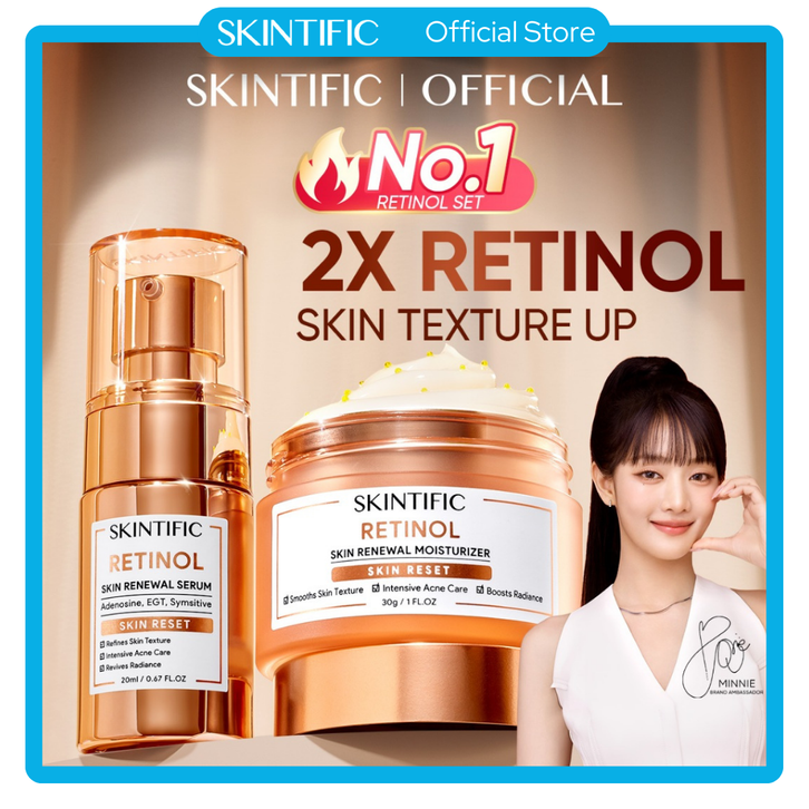 [Mall] Skintific Official Store Retinol 2pcs Set Paket Moisturizer + Serum Anti-aging Skincare Wanita Glowing BPOM