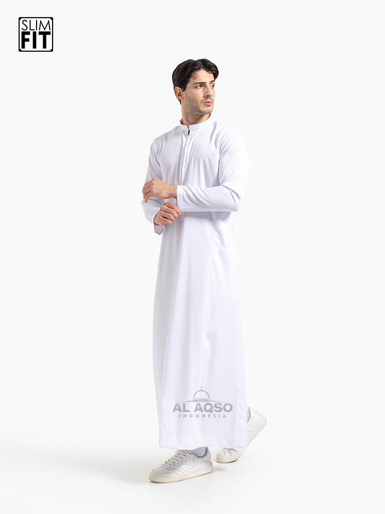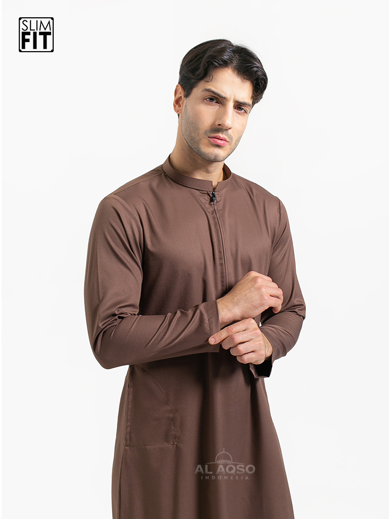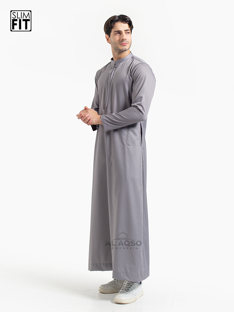 Al Aqso | Jubah Slimfit Thobe Gamis Pria Muslim Dewasa Premium Navy Abu Resleting Lengan Panjang | Jubah Ali