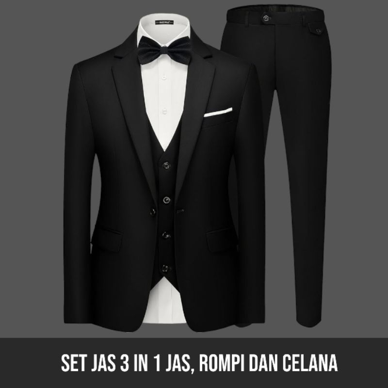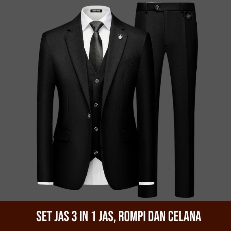Dvandra.id Setelan Jas 3 in1 Jas Rompi Dan Celana slimfit Set jas hitam Jas Formal