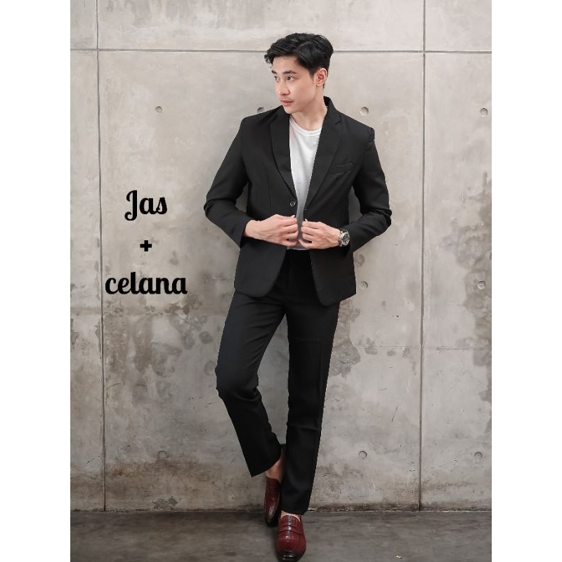 Dvandra.id Setelan Jas Blazer 2 in1 Jas dan Celana Original Set Jas Hitam Jas Formal