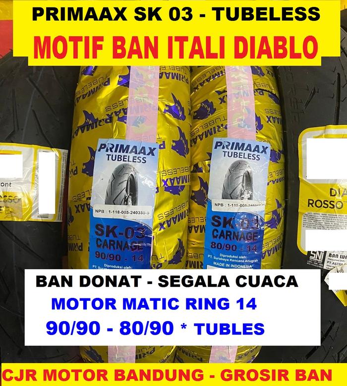 Ban Primaax Sk 03 80 90 Ring 14 Ban Donat Harian Tubeless Primax Sk03 Ban Tubles Motor Beat Mio Vario - 80/90 Ring 14