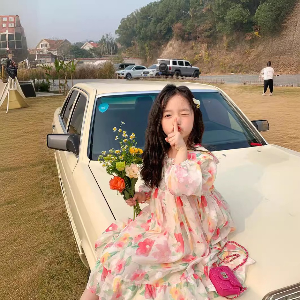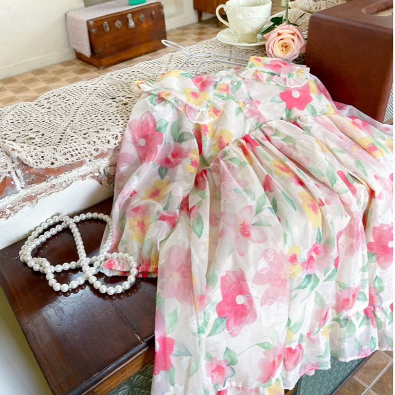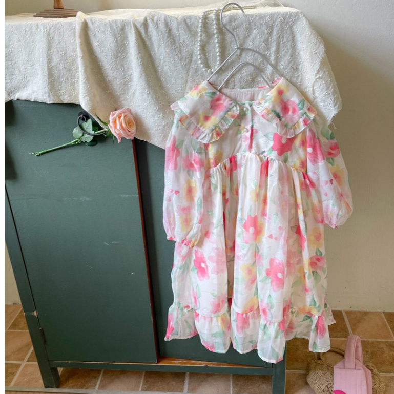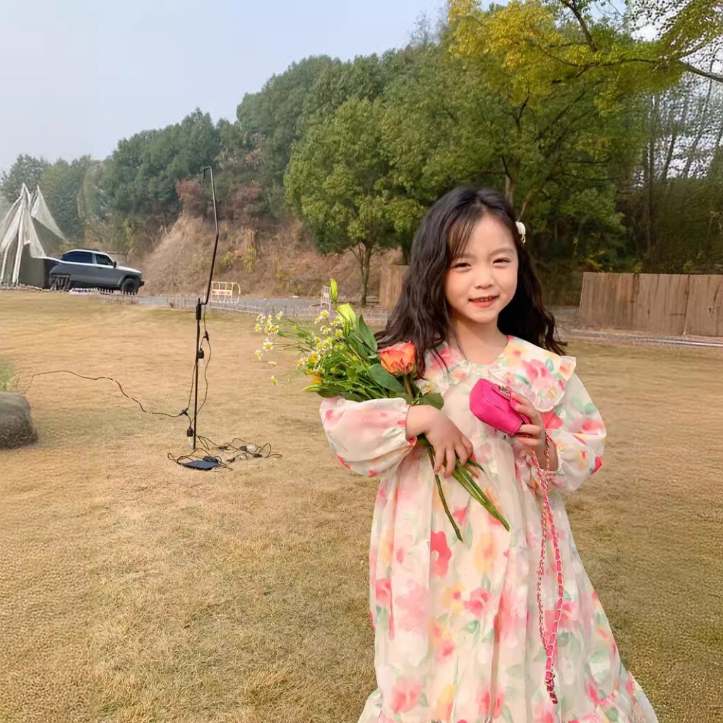 Dress Gaun Anak Korea Bunga Lengan Panjang