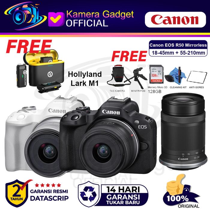 Canon Eos R50 Kit 18-45Mm + 55-210Mm Mirrorless Camera Resmi R 50 - Body Standar, Paket Standard