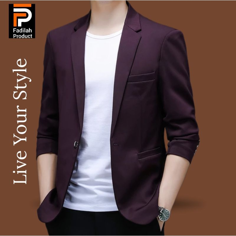 Jas Blazer Pria Hitam Semi Formal Slimfit Model Saku Tanpa Tutup Lengan Panjang