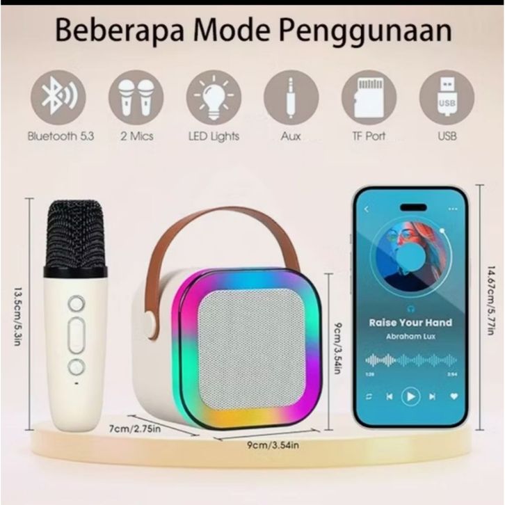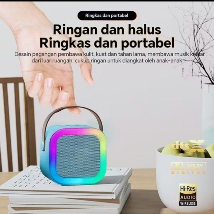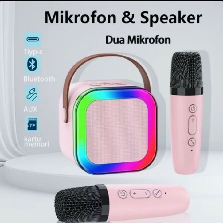 Mini Bluetooth Karaoke 2 Mic Speaker Microphone K12 Wireless speaker aktif mic karaoke suara jernih - 2 Mic