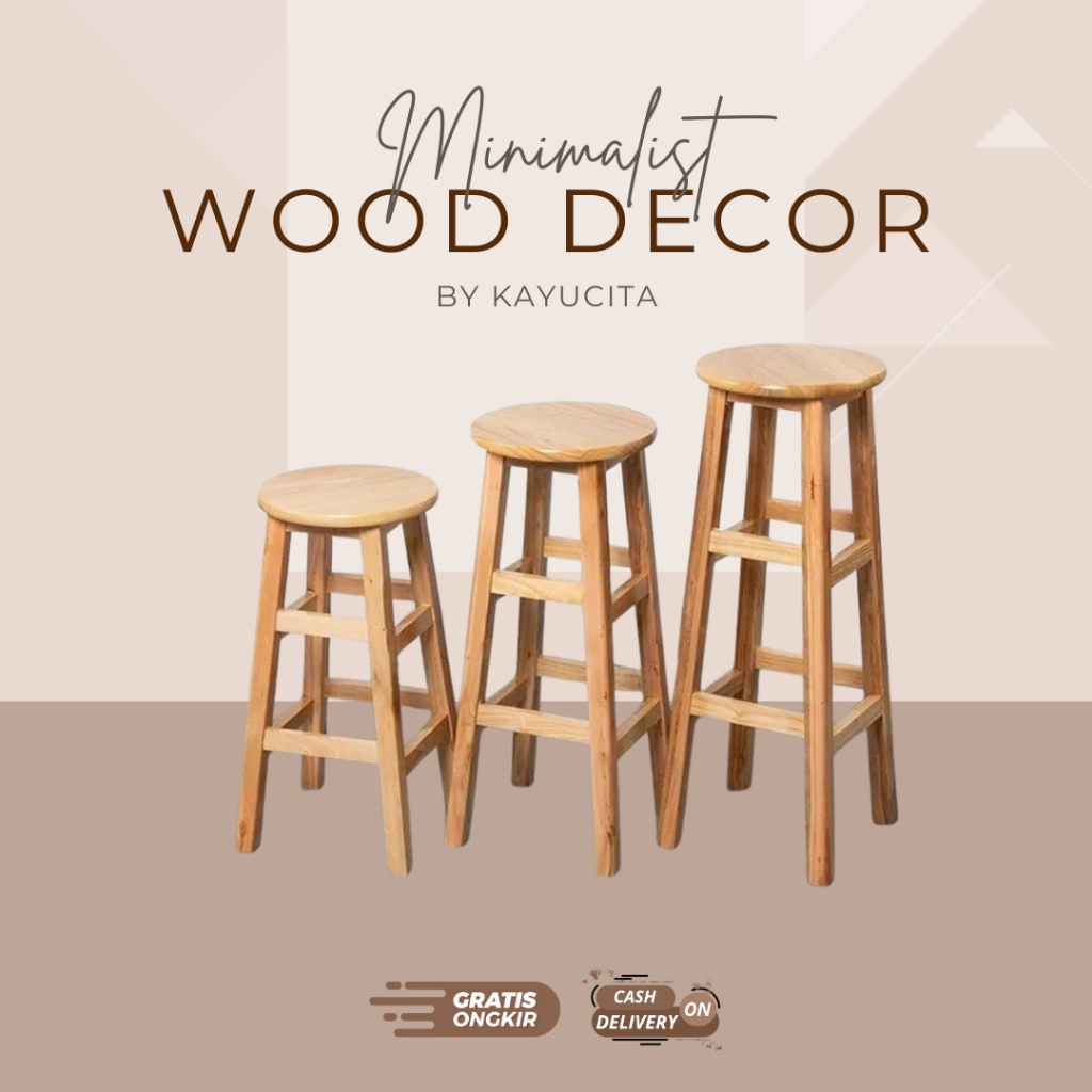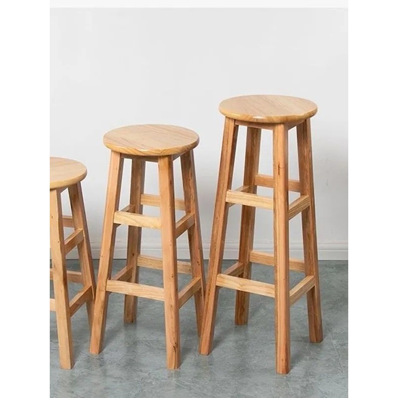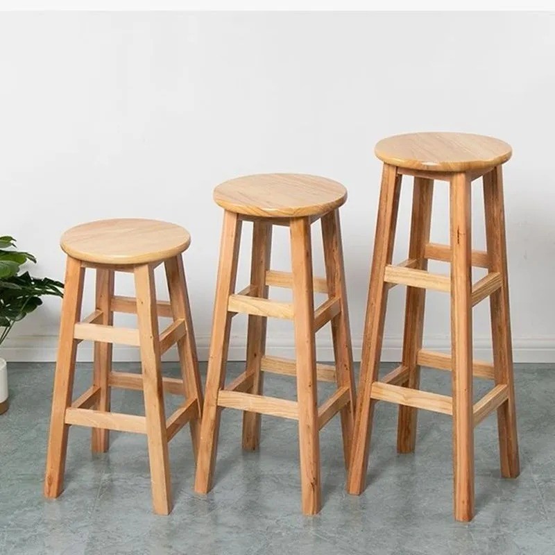 Kursi Cafe Kayu Pinus Bulat Natural - Tinggi 45cm & 60cm - Murah, Berkualitas, Nyaman
