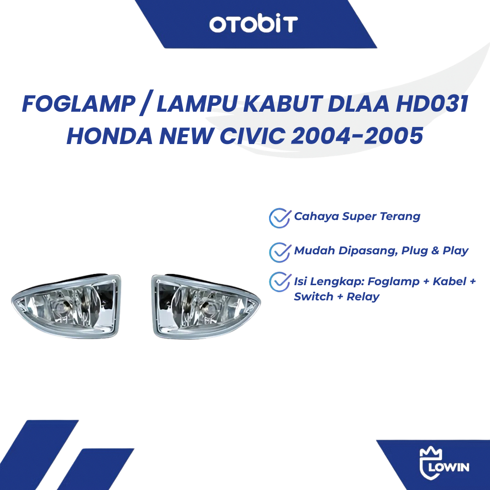 Foglamp Honda Civic 2004 2005 HD031 / Lampu Kabut DLAA + Kabel Set & Switch