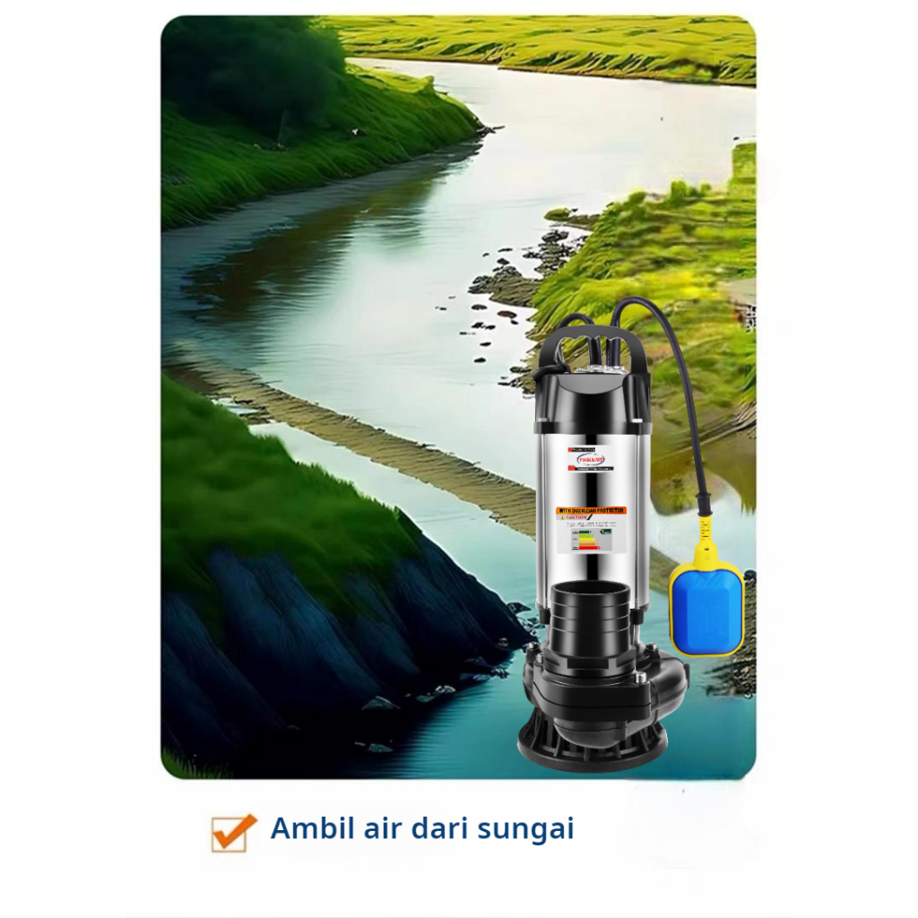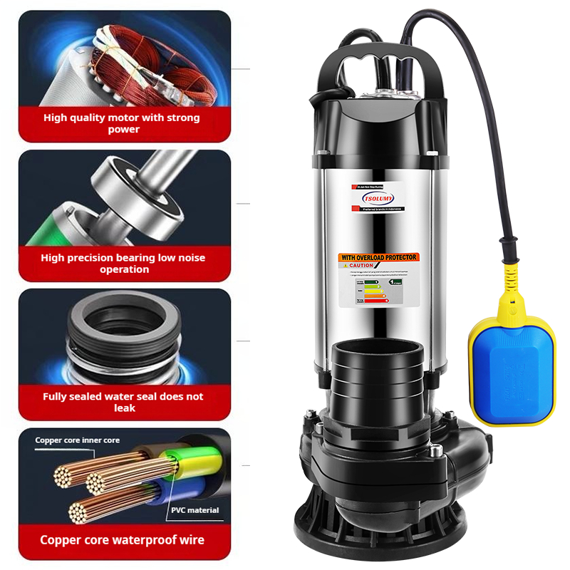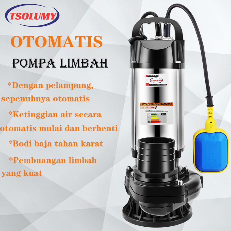Tsolumy Pompa Celup Air Kotor Otomatis 1500W Stainless Submersible Pump 3Inch Pompa Kolam Dan Banjir