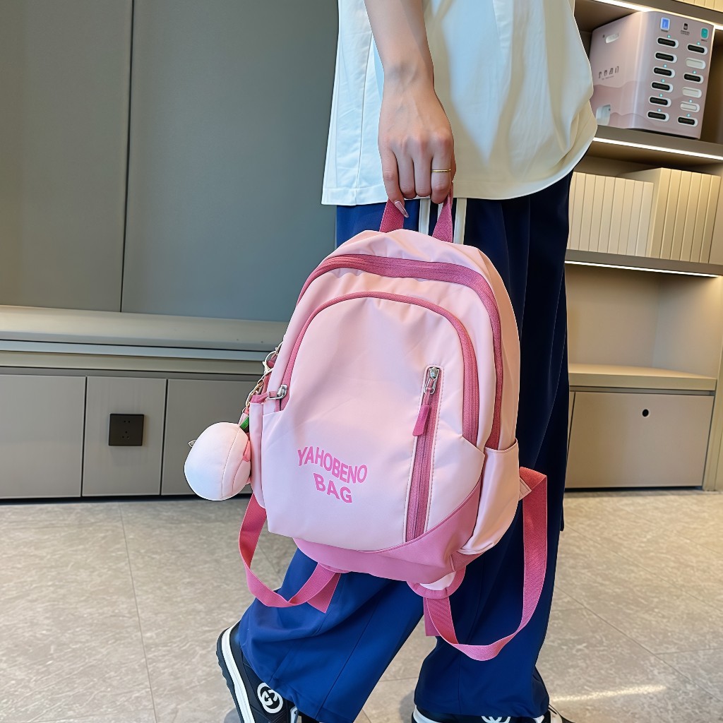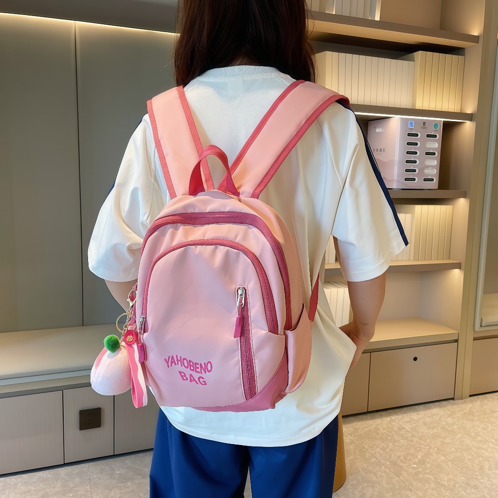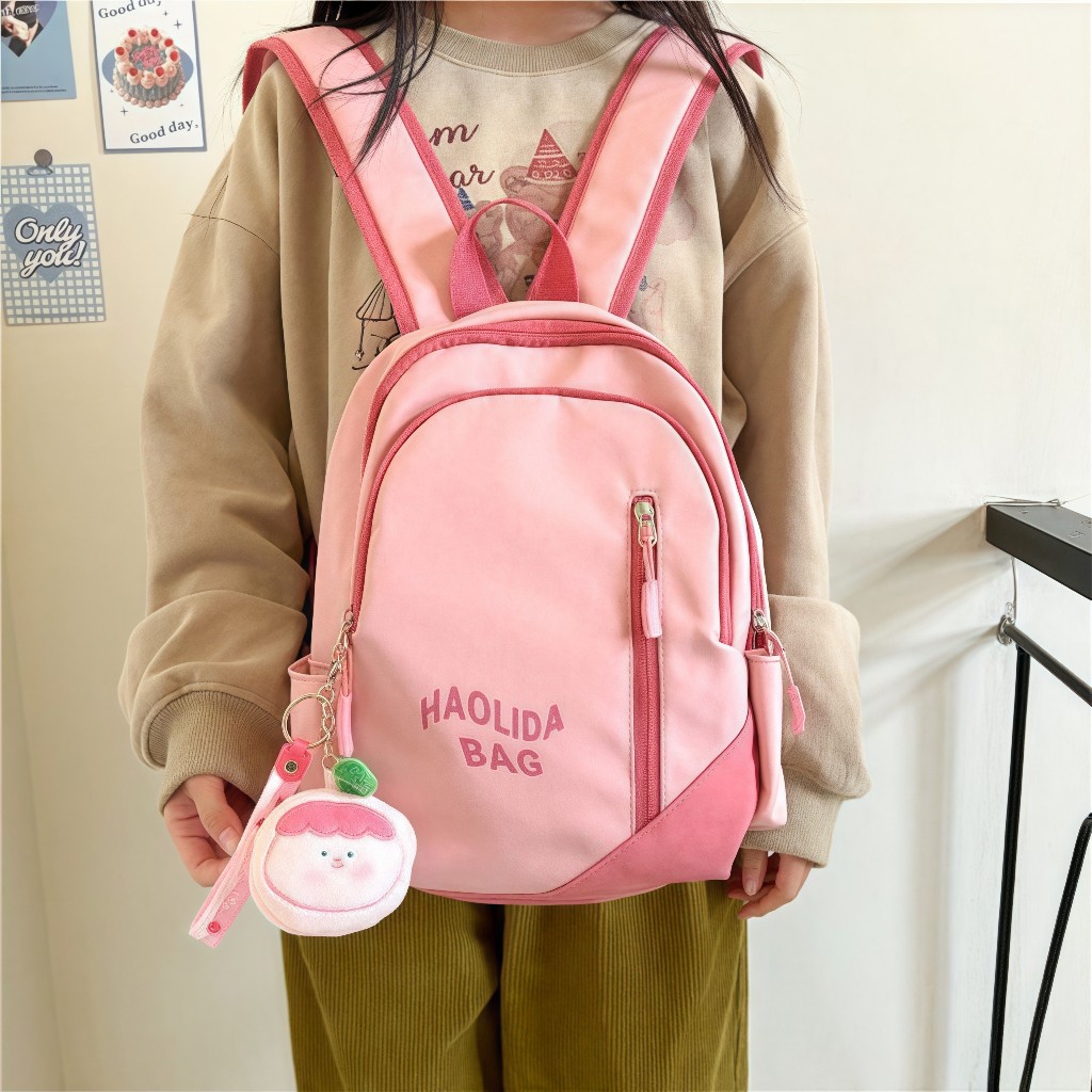 [Liontin Gatis] Tas Sekolah Wanita Pink Lucu/ Ins Tas Ransel Korea Import Fashion Siswa /Backpack Kanvas Siswa Laptop /