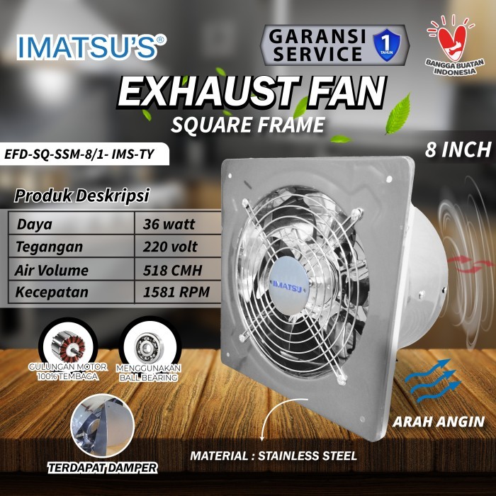 Exhaust Fan Stainless Steel 8" Inch Wall Air Duct Booster Fan Plafon Dinding Besi 8 Inci