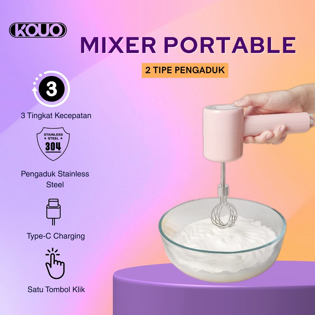 KOUO Hand Mixer Portable Vertikal Design Stainless Steel Rechargeable Tanpa Listrik untuk Menghaluskan Telur Adonan Kue