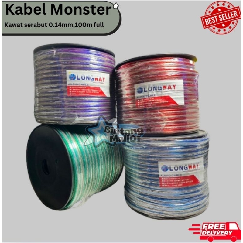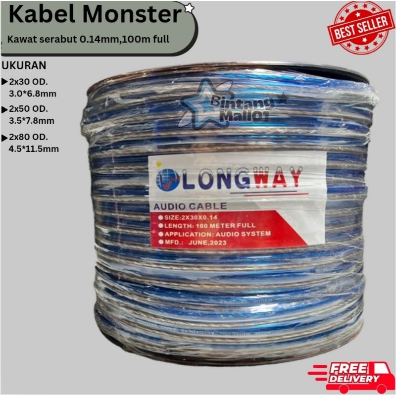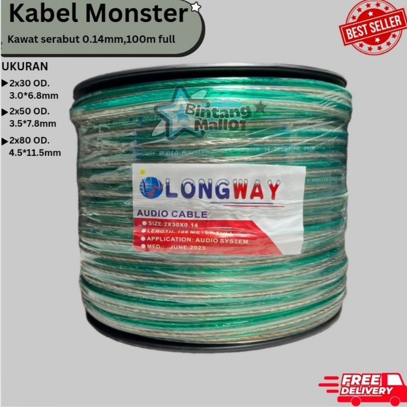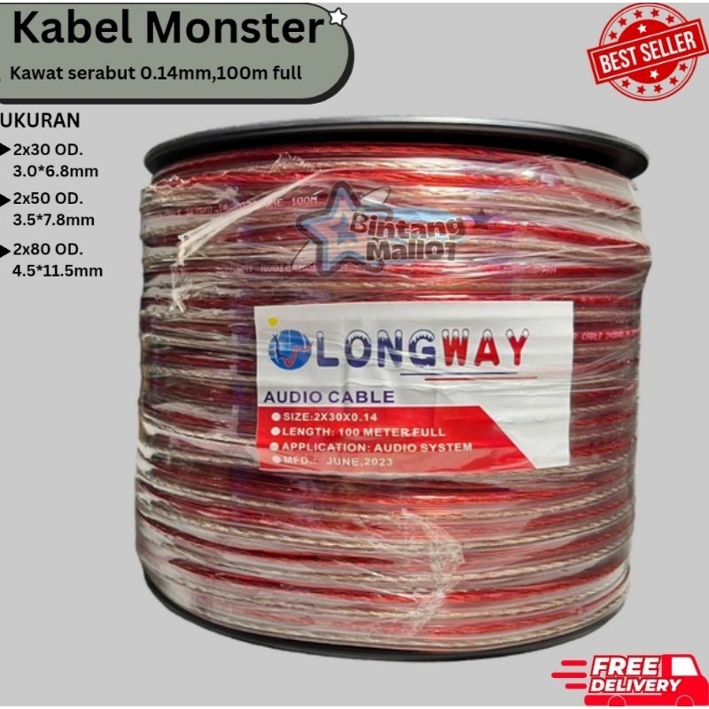 KABEL TRANSPARAN LONGWAY DENGAN BOBIN 100 METER FULL / KABEL LISTRIK / KABEL AUDIO SPEAKER/ KABEL LISTRIK MONSTER TRANSPARANT