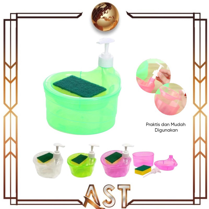 Dispenser / Wadah Tempat Sabun Cuci Piring Bulat Free Spons