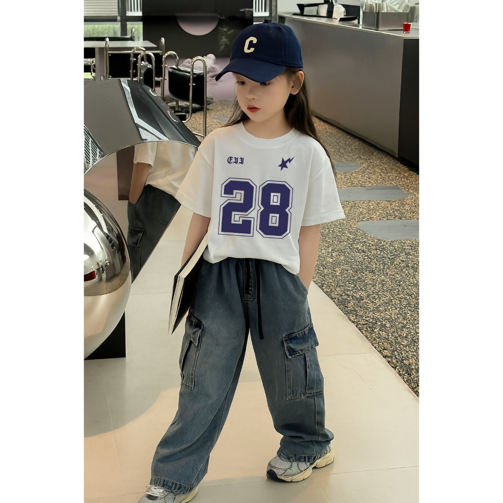Kaos Anak Perempuan Korean Nomber 28 Baju Anak Korea Lucu 1-15 Tahun Kaos katun Premium