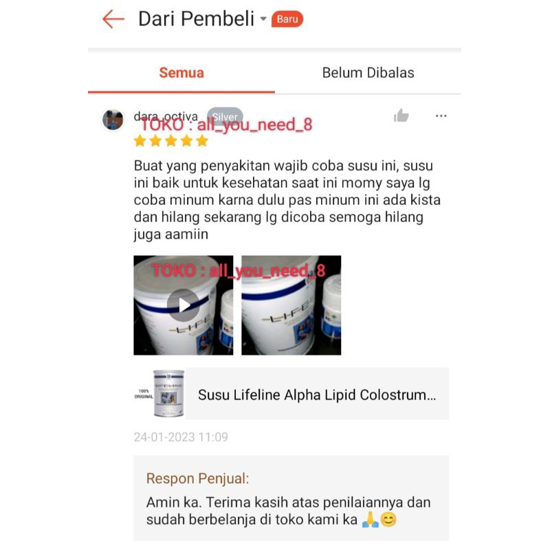 SUSU LIFELINE ALPHA LIPID COLOSTRUM SYARAF KEJEPIT GRATIS ONGKIR