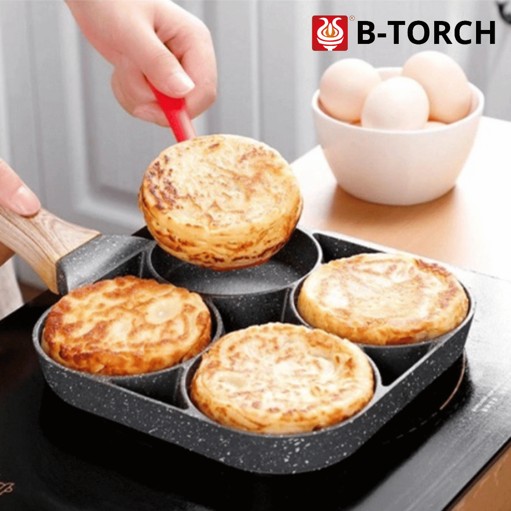 B-TORCH Cetakan Kue Pancake 4 Lubang Wajan Teflon Telur Anti Lengket