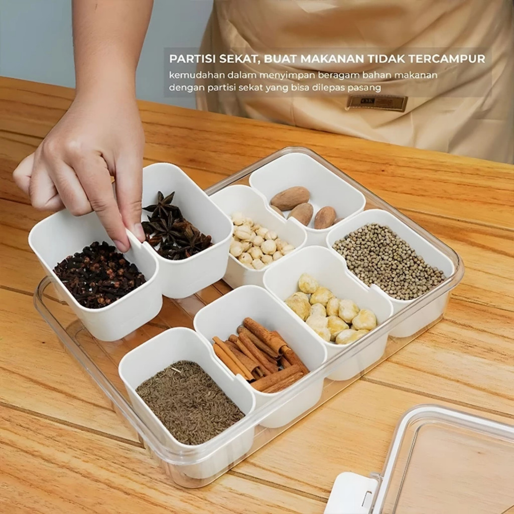 Kotak Penyimpanan Makanan | Wadah Sayur Dan Buah Tempat Bumbu Dapur | 2 Grid / 3 Grid / 4 Grid/ 8 Grid Food Container