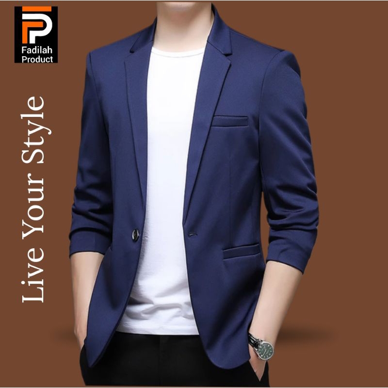 Jas Blazer Pria Hitam Semi Formal Slimfit Model Saku Tanpa Tutup Lengan Panjang