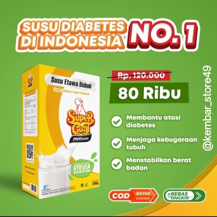 SUPERGOAT SUSU KAMBING ETAWA PREMIUM KHUSUS DIABETES-SUSU KAMBING STEVIA 200gr- SUPERGOAT PLATINUM 200GR