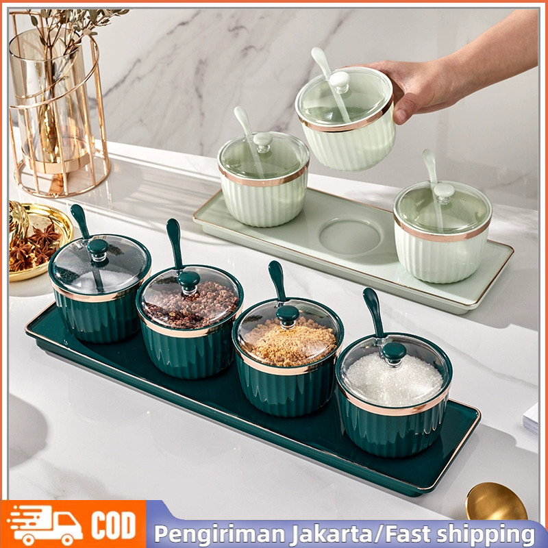RHAAST Tempat Bumbu Set Estetic 4IN1 SET Tempat Bumbu Dapur Set Sendok Wadah Bumbu Aesthetic