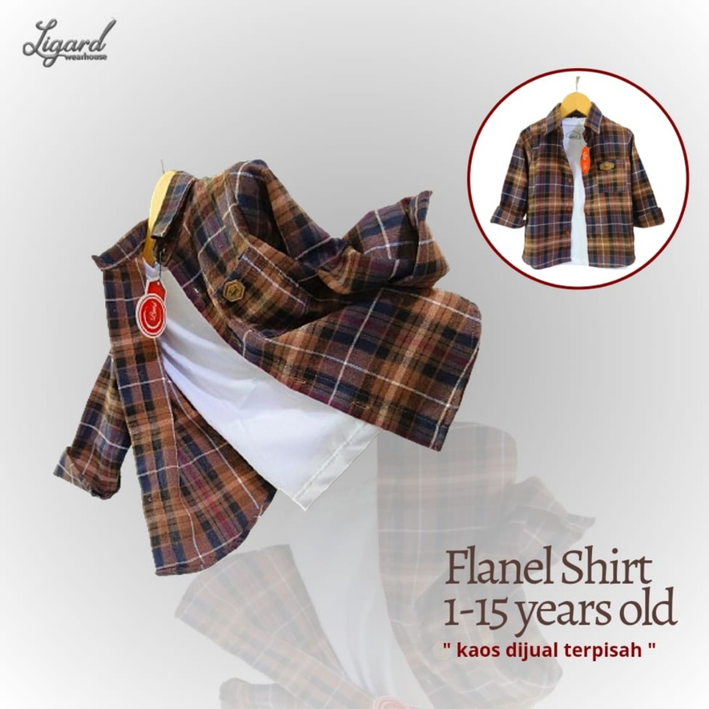 kemeja anak lengan panjang hem flanel kotak tartan 7-15 tahun premium distro
