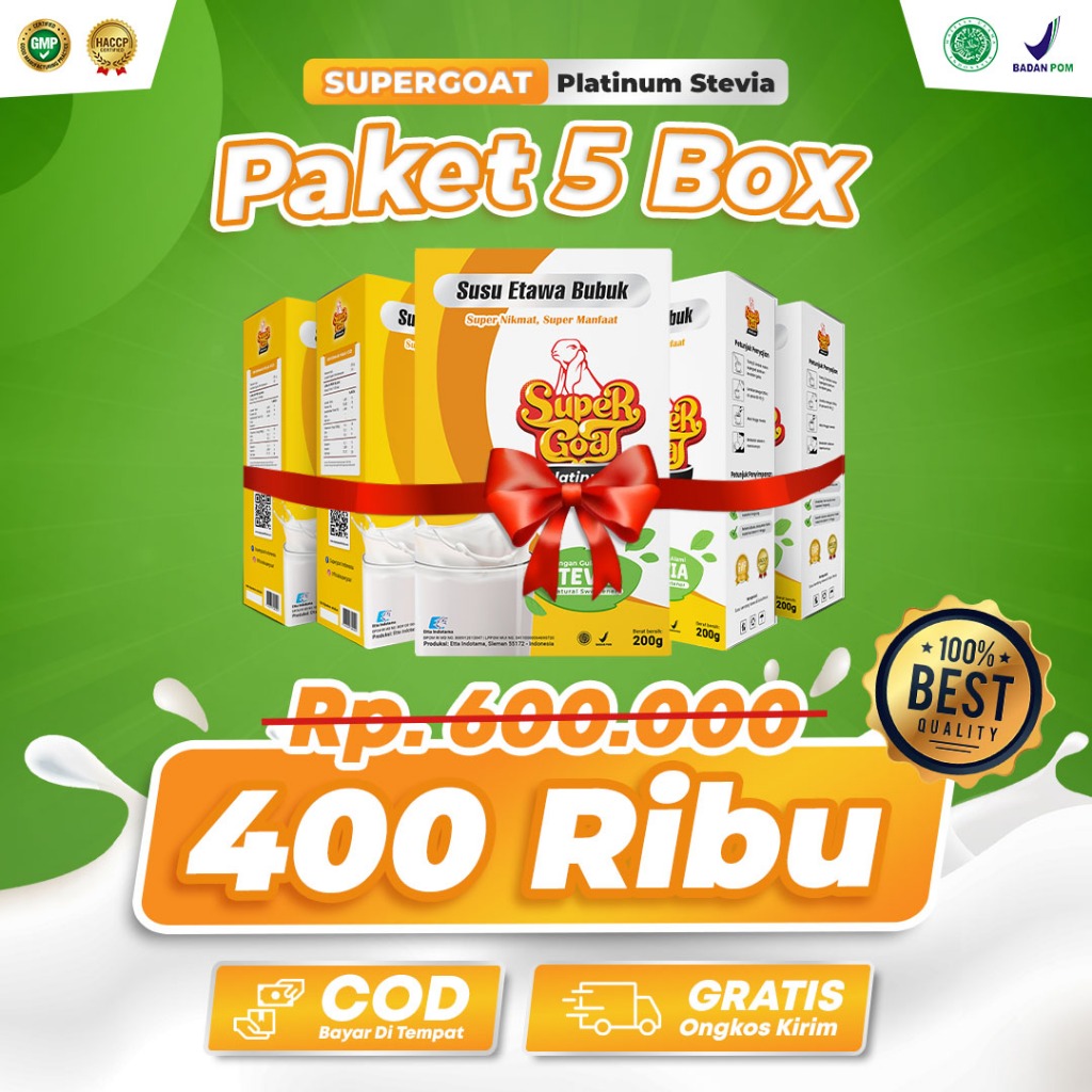 SUPERGOAT SUSU KAMBING STEVIA PLATINUM 5 BOX MENSTABILKAN DIABETES BUBUK DAIRY