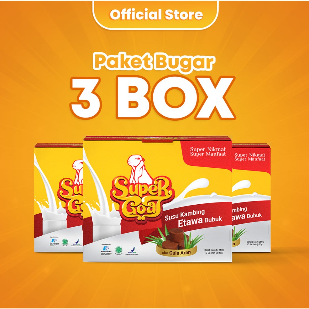 SUPERGOAT SUSU KAMBING ETAWA DENGAN GULA AREN ALAMI PAKET 3 BOX