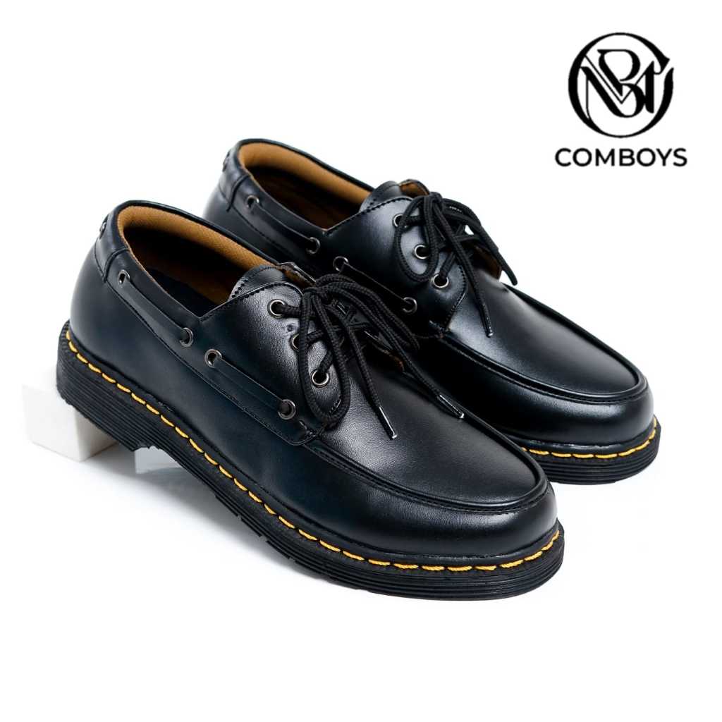 Sepatu Pria Formal Loafers Docmart Comboys Black Kulit Pu Pantofel Kerja Kantoran 01