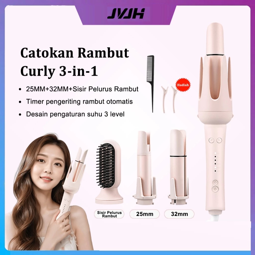 JVJH Catokan Rambut Curly Otomatis 3-in-1 25mm 32mm Multifungsi Sisir Catok Pelurus Rambut Kepala Pengganti