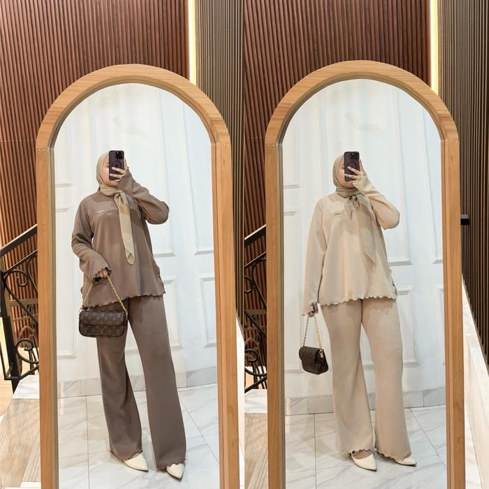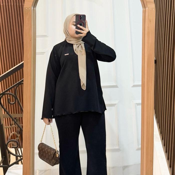Denacollection Setelan Fuji Celana Cutbray Bahan Knit Japan Premium Casual Santai Celana Dewasa Baju Panjang Nyaman - Bl