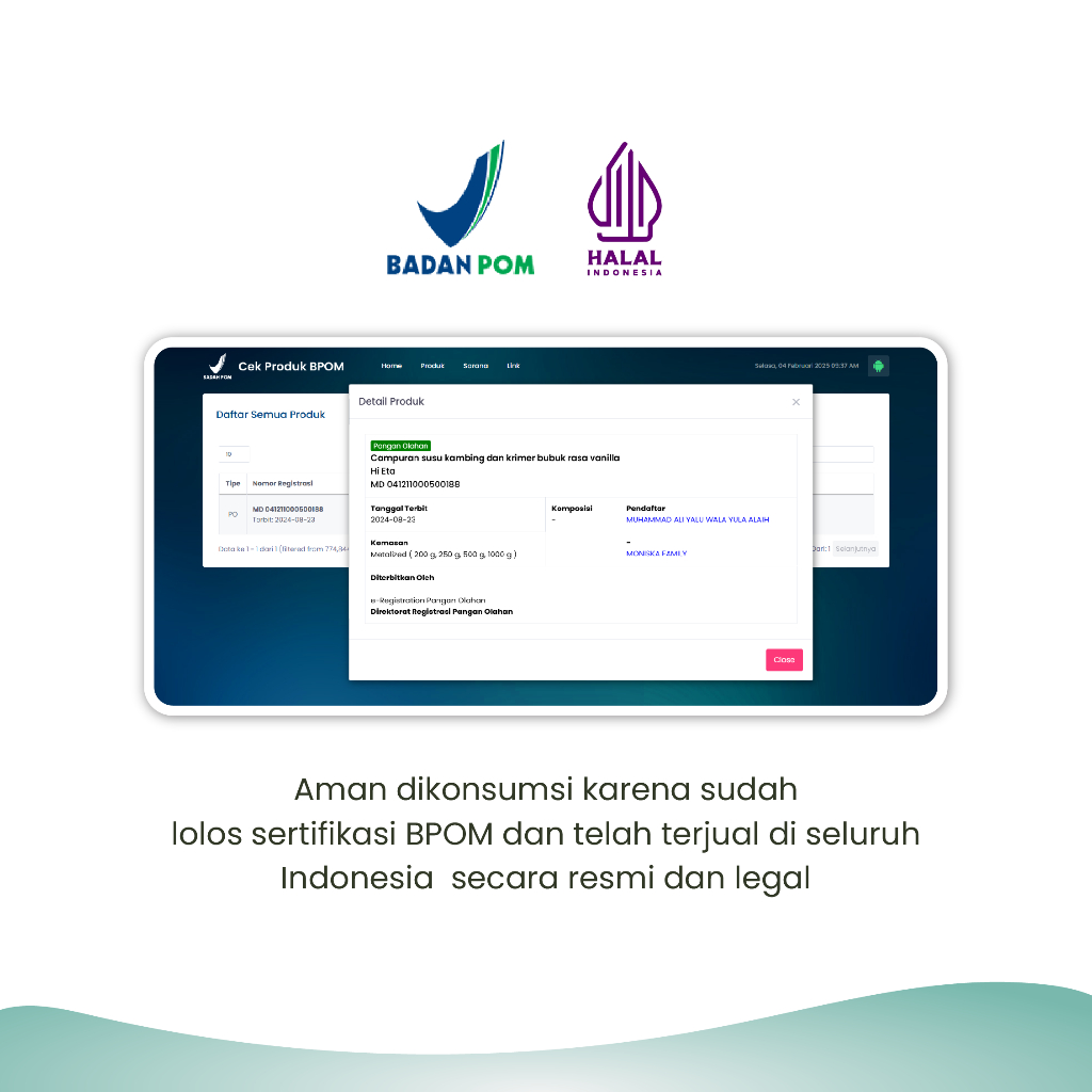 SUSU KAMBING ETAWA BUBUK 1 KILOgr RASA VANILA HIETA