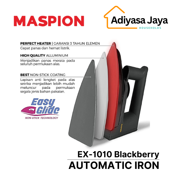 Automatic Iron EX-1010 Blackberry (Maspion) / Setrika Listrik/ Gosokan Baju / Dry Iron