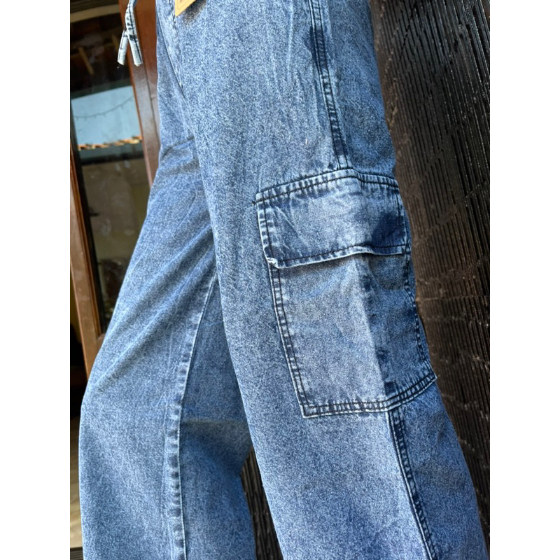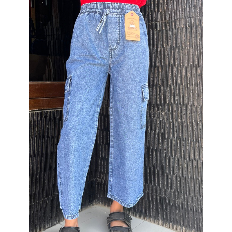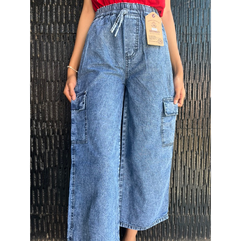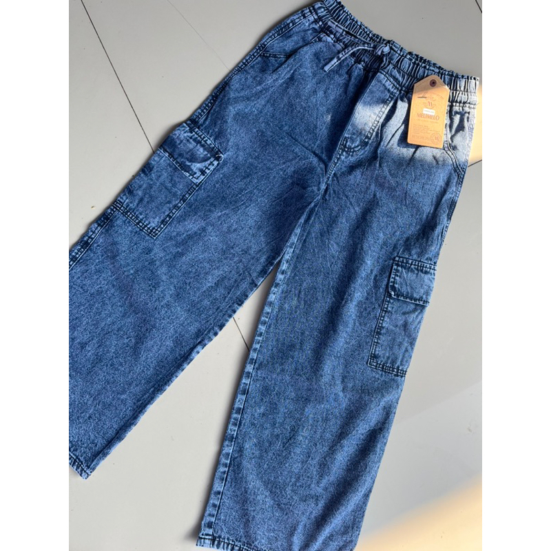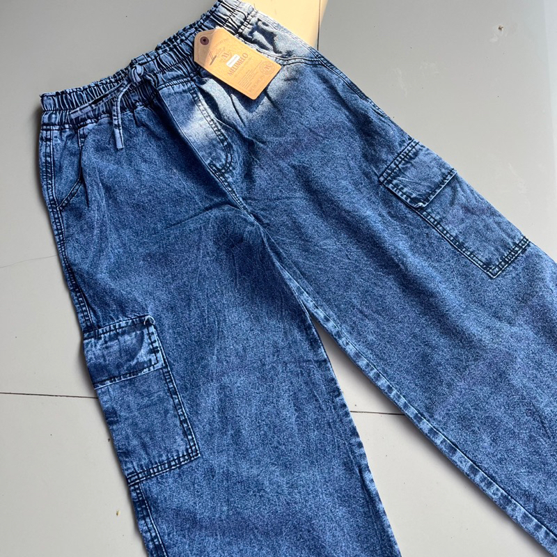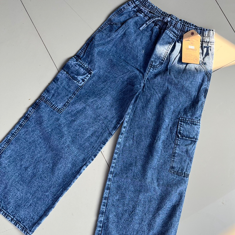 Celana Kulot Jeans Cargo Anak Usia 4-12th Celana Jeans Saku Cargo Perempuan