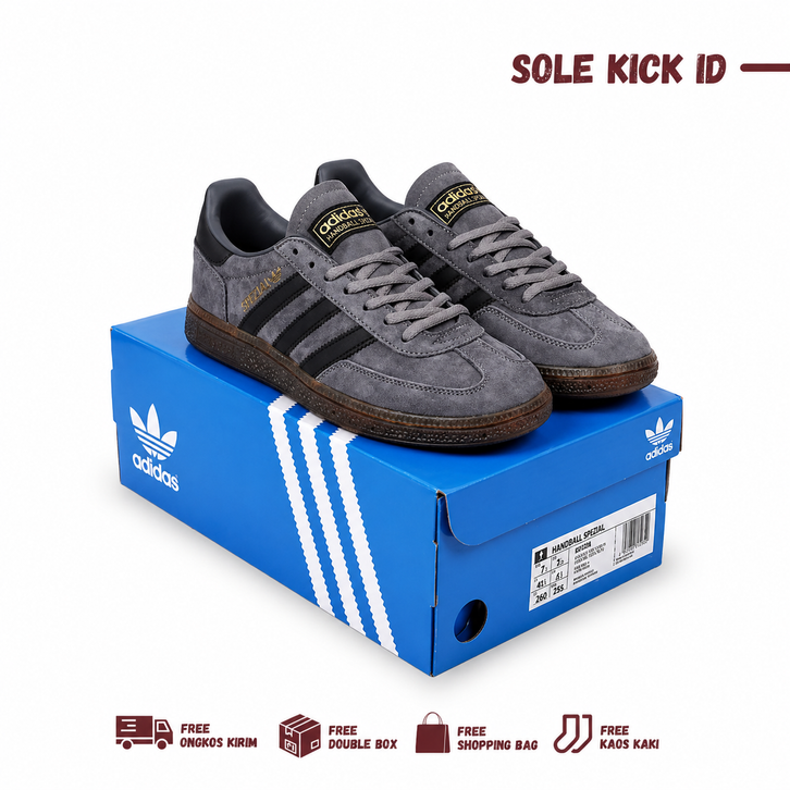 Sepatu Sneakers Pria & Wanita Adidas Spezial Handball Dark Grey Black Gum Premium Import Quality