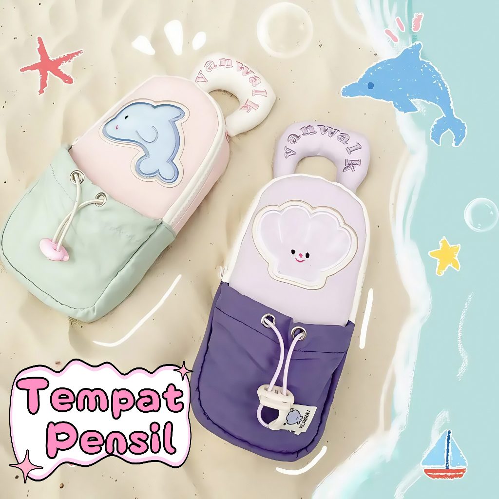 [NEW] Kotak Pensil Kartun Berkapasitas Besar/Kotak Pensil Cangkang Lumba-Lumba Lucu/Tas Penyimpanan Alat Tulis Kantor Si