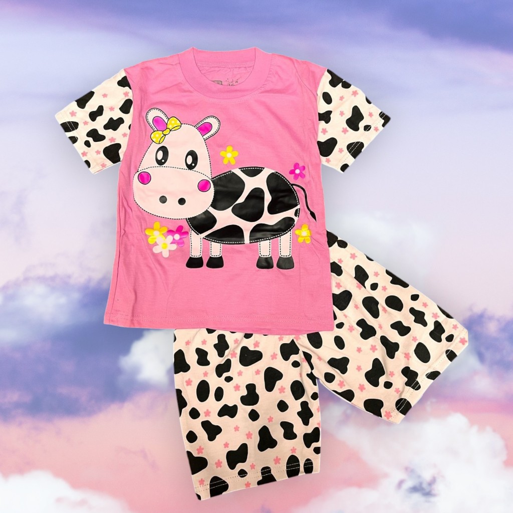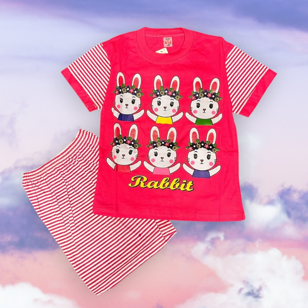 Setelan Anak Perempuan Paket Hemat 5 Pics Bahan Katun Lengan Pendek Usia Anak 6 Bulan-10 Tahun