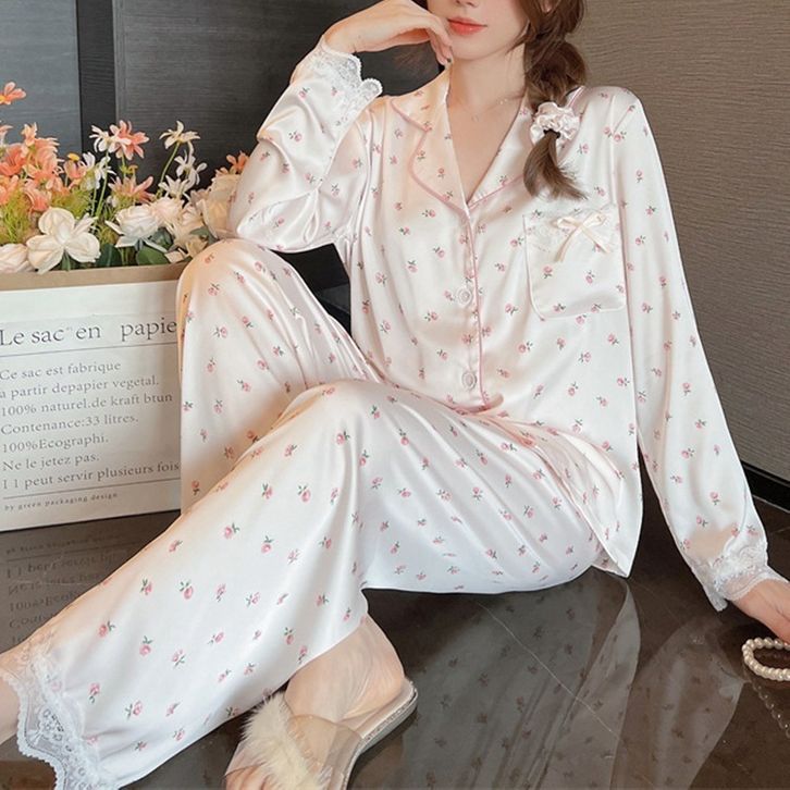 2025 versi Korea baru dari lengan panjang + celana panjang bermotif bunga kecil dapat dikenakan di luar pakaian rumah