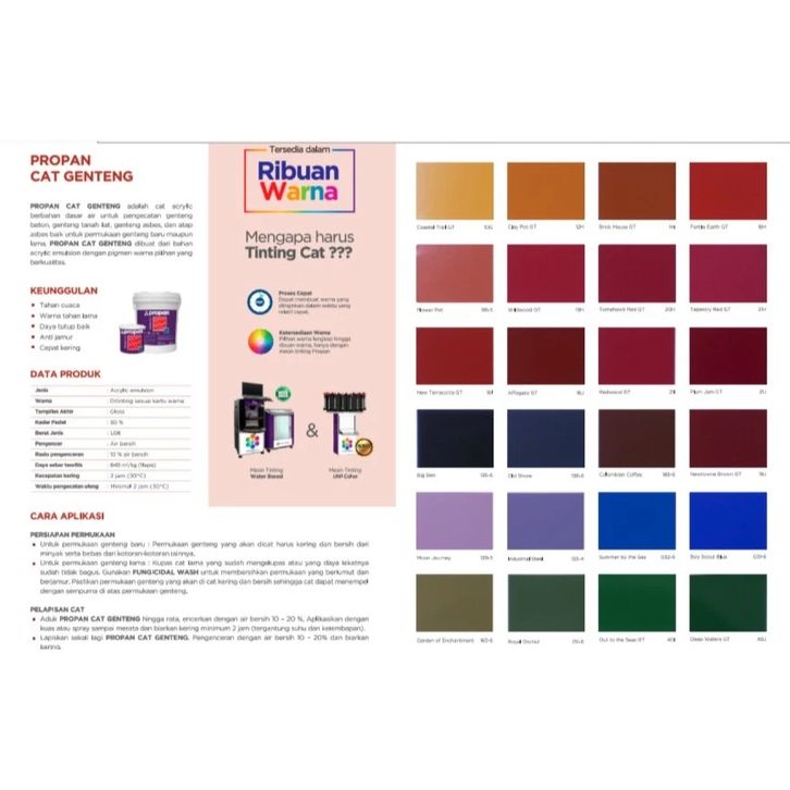 10G Coastal Trail GT, 12H Clay Pot GT, 14I Brick House GT, 16H Fertile Earth GT, 16I New Terracota GT, 16J Affogato GT, 19H Wildwood GT, 19J Newtowne Brown, 20H Tomahawk Red GT, 21H Tapestry Red GT, 21J Plum Jam GT, 031-6 Boy Scout Blue, Summer by the Sea, 40J Deep Waters GT, 129-5 Moon Journey, 133-4 Industrial Ste, 135-6 Big Ben, 138-6 Old Shore, 151-6 Royal Orchid, Garden of Enchanment, 181-5 Flower Pot, 185-6 Colombian Coff, 21I Redwood GT, 005-5 Wisteria Way, 1218 Orange Yellow, 1226A Signal Yellow, 144-5 Cloud Grey, 2315 Metro Orange, 3330 Red Chilli, 6427 Tosca Green, 7311 Panama Green, 7405 Forest Green, 9101 White, 9452 Jet Black, 188-6 Tango Red