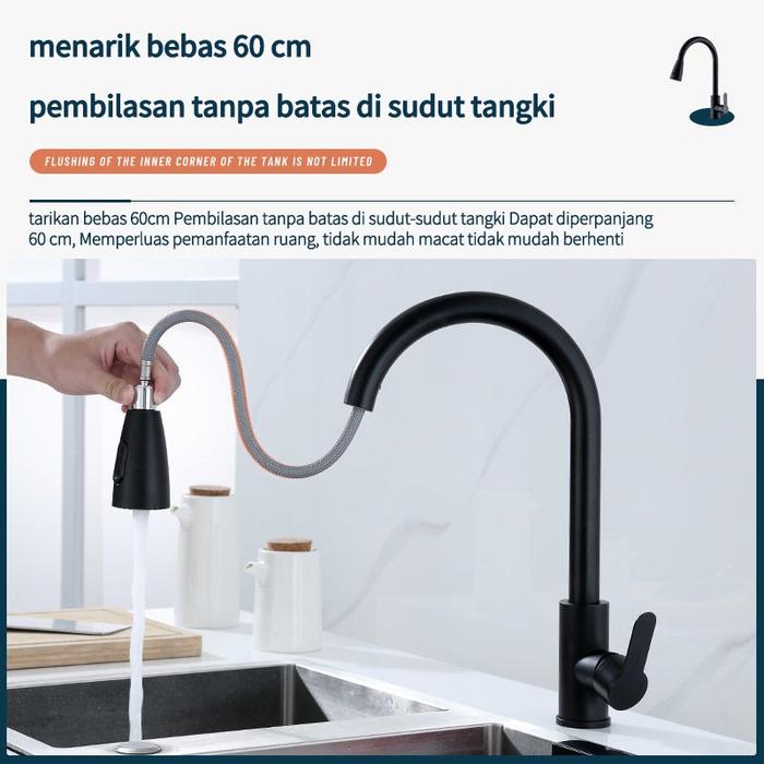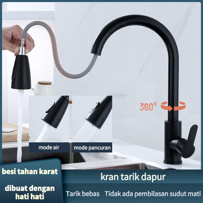 Tarik Faucet Sprayer/Kran Sink Cuci Piring/Keran Angsa Fleksibel/Keran Wastafel Di Dinding - Kualitas Tinggi - Hitam