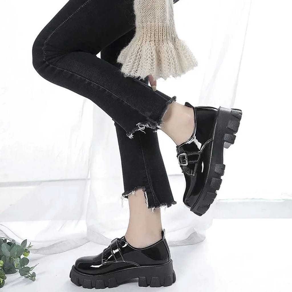 SR Sepatu DOCMART GESPER Slip On Wanita Sepatu Oxford Hitam Wanita Sepatu Kerja Wanit