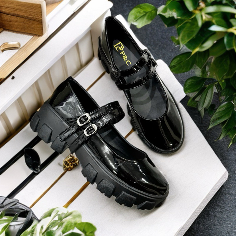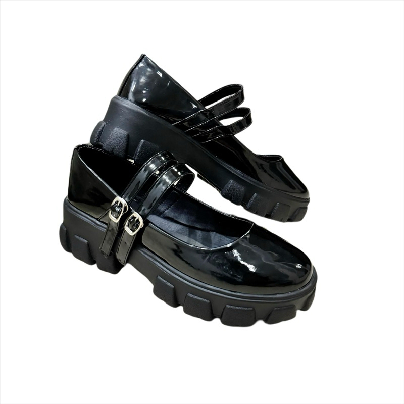 Sepatu Docmart Wanita Yuki Terbaru Hitam Glosy Gerper 2 Fashion Korea Flat loafers Ce