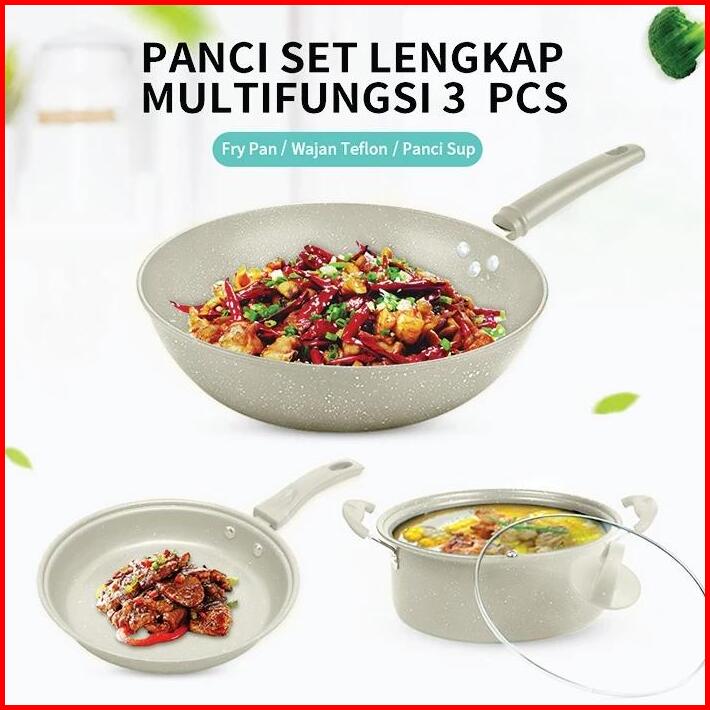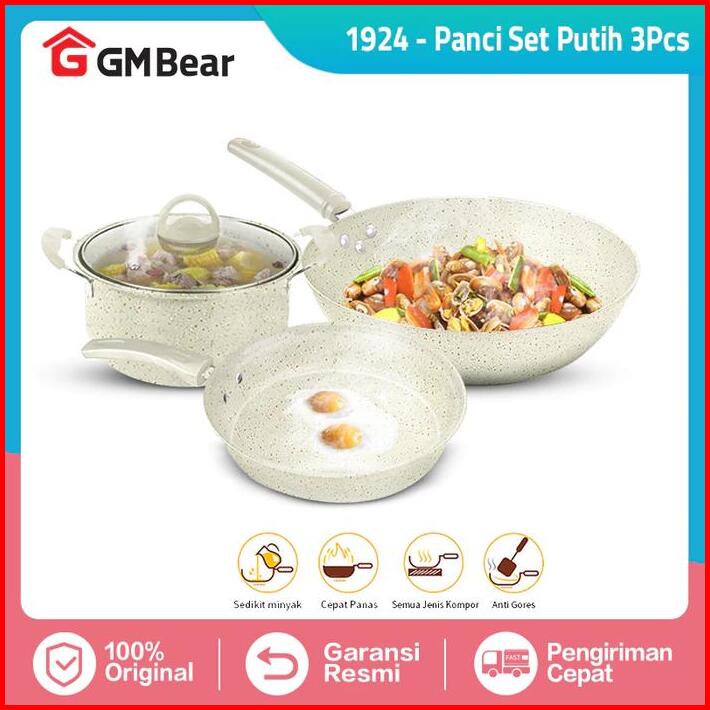 Bayar 1 Dapat 3 Gm Bear Set Panci Wajan 3in1 P0220 Wajan Panci Tutup Kaca Cantik Lengkap Fungsional