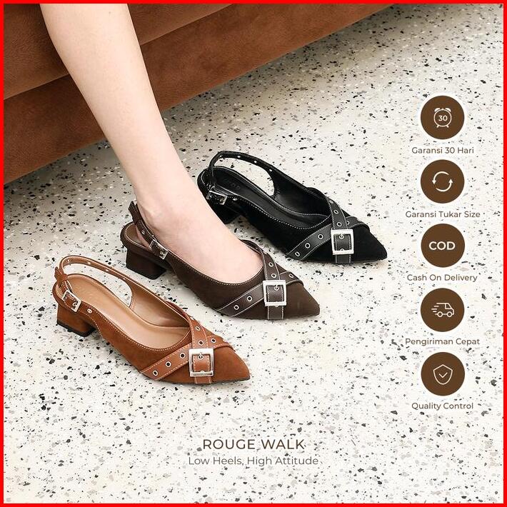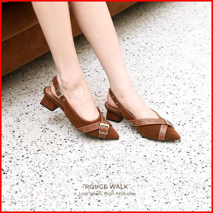 Winod Fara Mules Heels 3cm Model Back Strap Sepatu Selop Suede Sepatu Heels Wanita