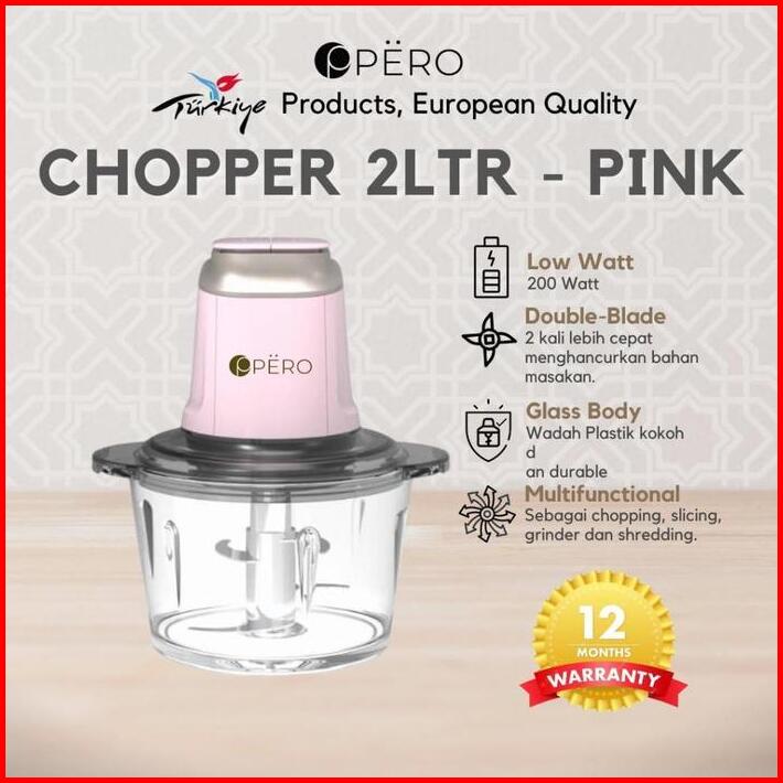 Exclusive Delladelli Pero Glass Fancy Chopper 2 Liter Food Processor 200 Watt Penggiling Daging Sayur Buah Es Batu Chopp