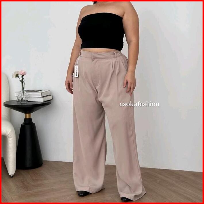 Adele Loose Pants Jumbo Celana Kulot Panjang Wanita Bigsize Highwaist