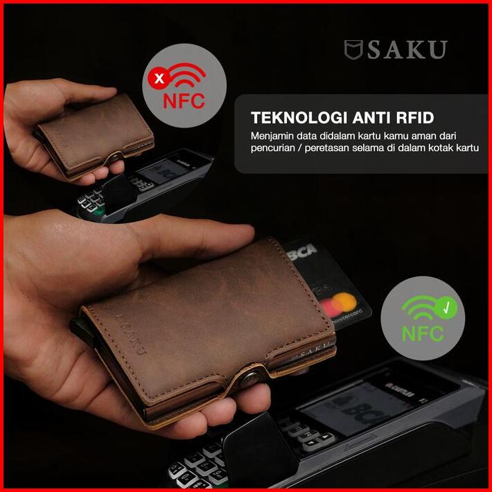 Saku Dompet Kartu Pria Wanita Smart Wallet Card Holder Rfid Kulit Blck