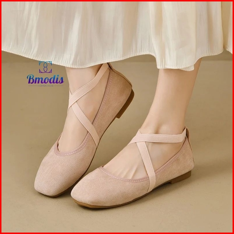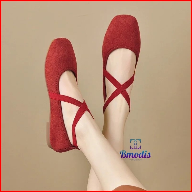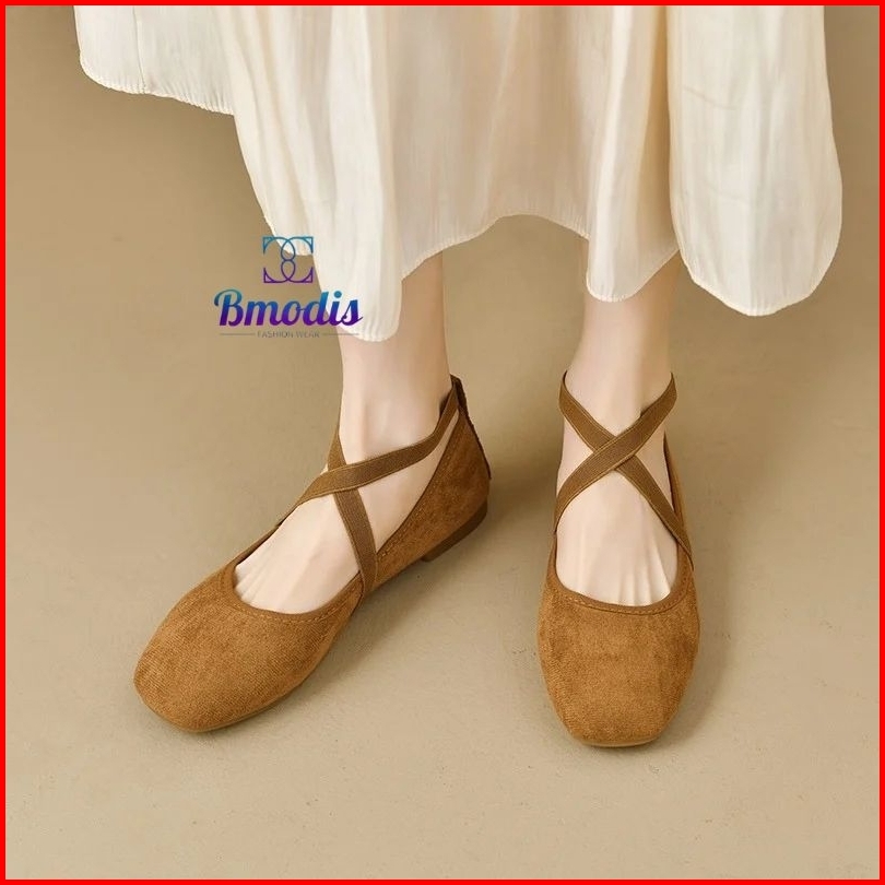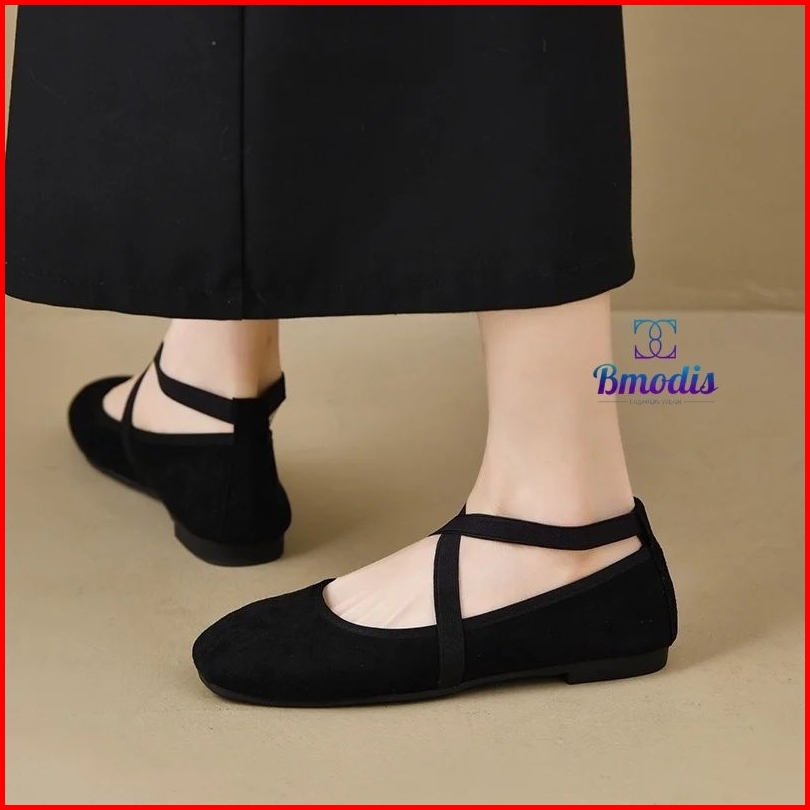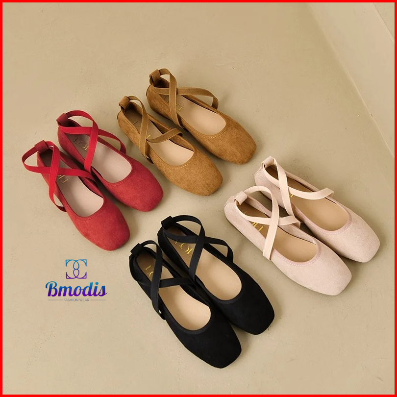 4818 Sepatu Flat Tali Silang Stretch Dan Stylish Ballerina Wanita With Box