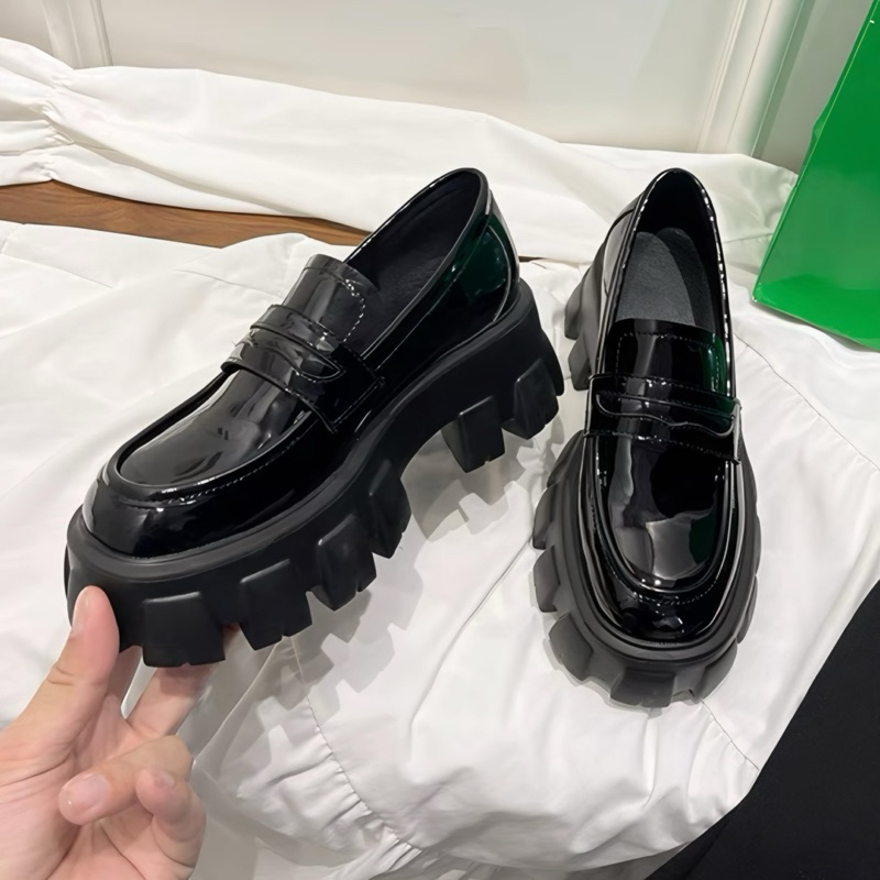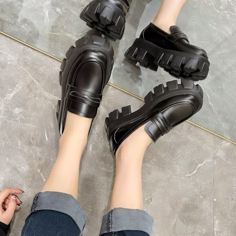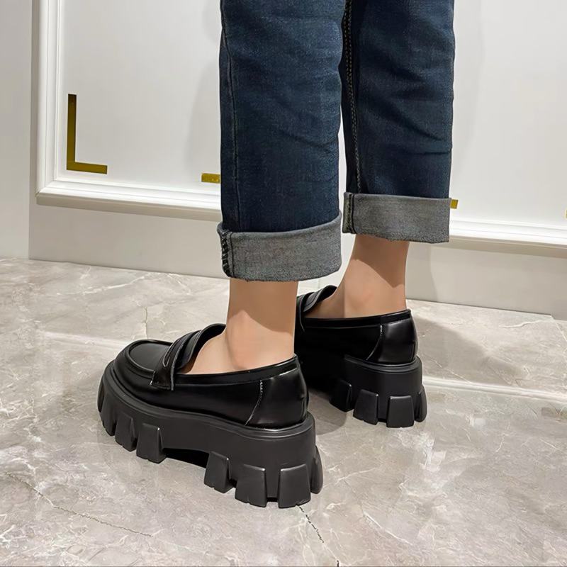 Sepatu Docmart Lolita Hitam 5 cm Kasual Kerja Ootd Kekinian Loafers Cewek Trend Hango